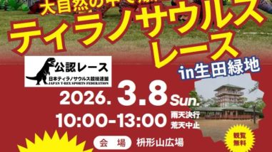 14:神奈川 2026年3月8日(日)【公認レース】ティラノサウルスレース in 生田緑地 枡形山広場 神奈川県川崎市 主催者お申込みフォーム 14:神奈川50:2026年公認レース 日本ティラノサウルス競技連盟川崎市:枡形山広場