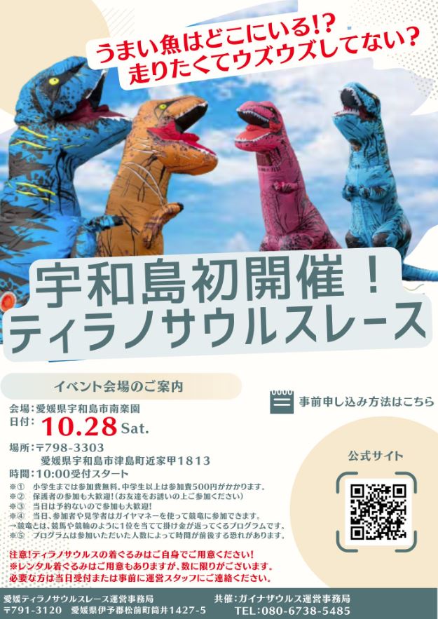 スマホの方は最下部に【サイドバー】を表示することにより全国のレース会場を確認できます。 2023年10月28日(土) ティラノサウルスレース 愛媛県宇和島市 38:愛媛 X Facebook LINE コピー 2023.10.222025.12.29 主催者ホームページ このページは現在閲覧できません。