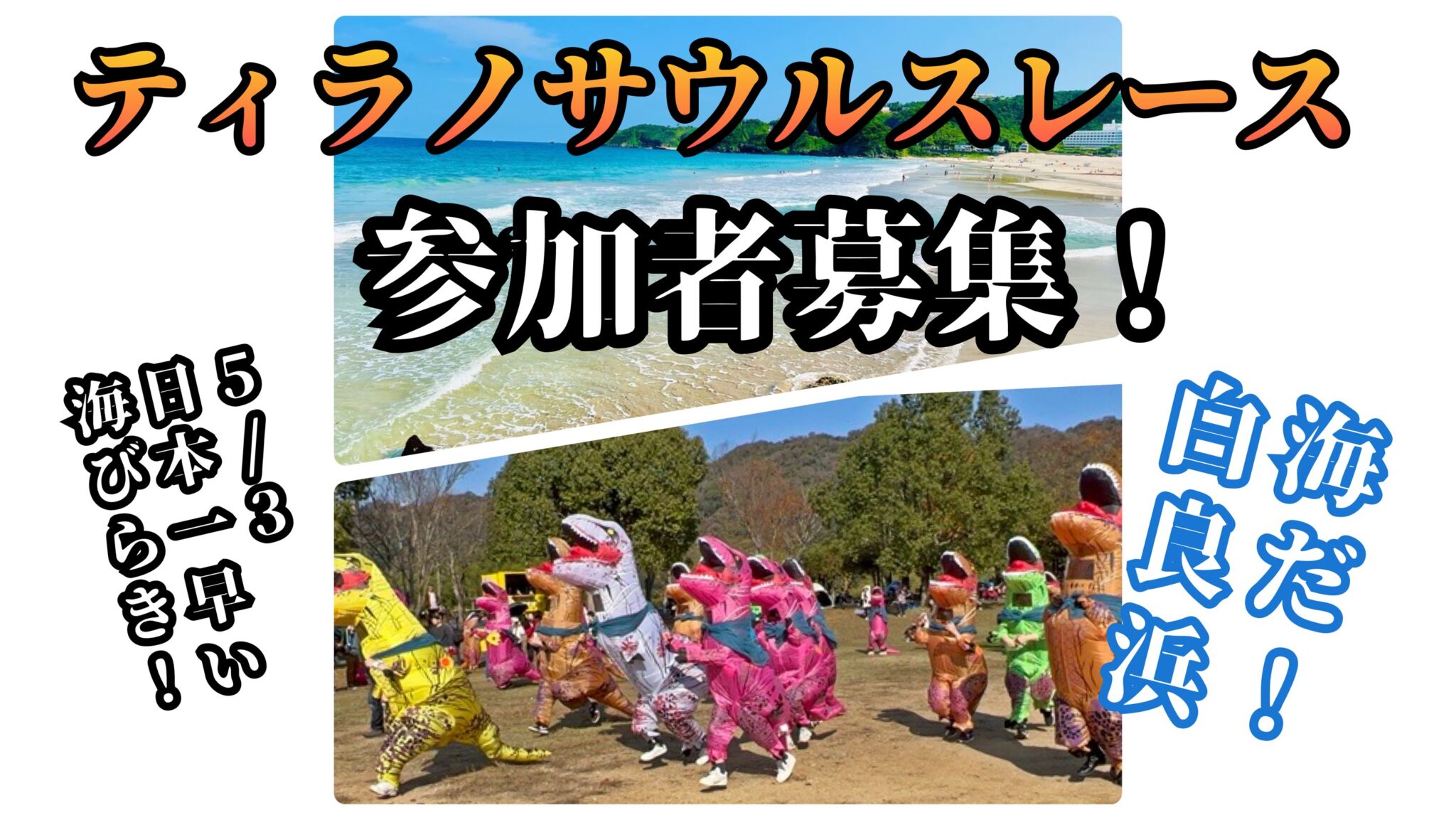 ○━━●━━○━━●━━○━━●━━○━━●━━○ 白浜ティラノサウルスレースin白良浜 ~和歌山ええとこ企画~ 日本中が注目!! 日本一早い海開きの白良浜で ティラノサウルスレースしちゃうぞ☆ 2024年5月3日(祝金) ○━━●━━○━━●━━○━━●━━○━━●━━○ 「白浜ティラノサウルスレースin白良浜 」の...