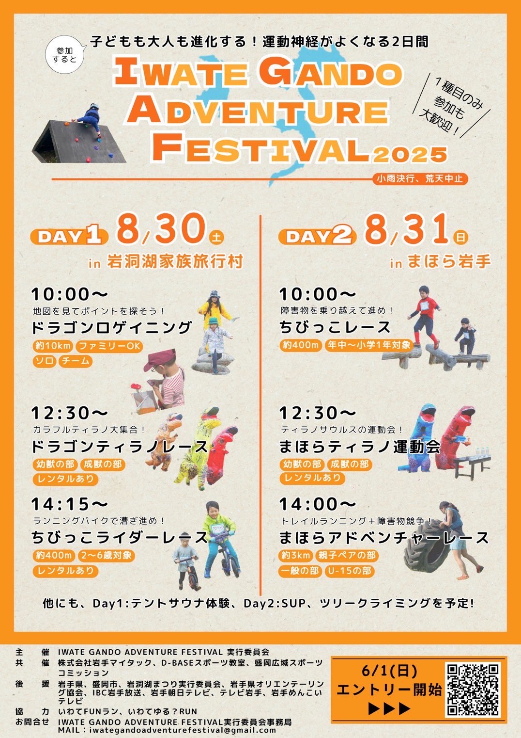 IWATE GANDO ADVENTURE FESTIVAL 2025 開催決定! 2025.8.30(Sat) in 岩洞湖家族旅行村 2025.8.31(Sun) in まほら岩手 昨年多くの皆さまにご参加いただいた「IWATE GANDO ADVENTURE FESTIVAL」を