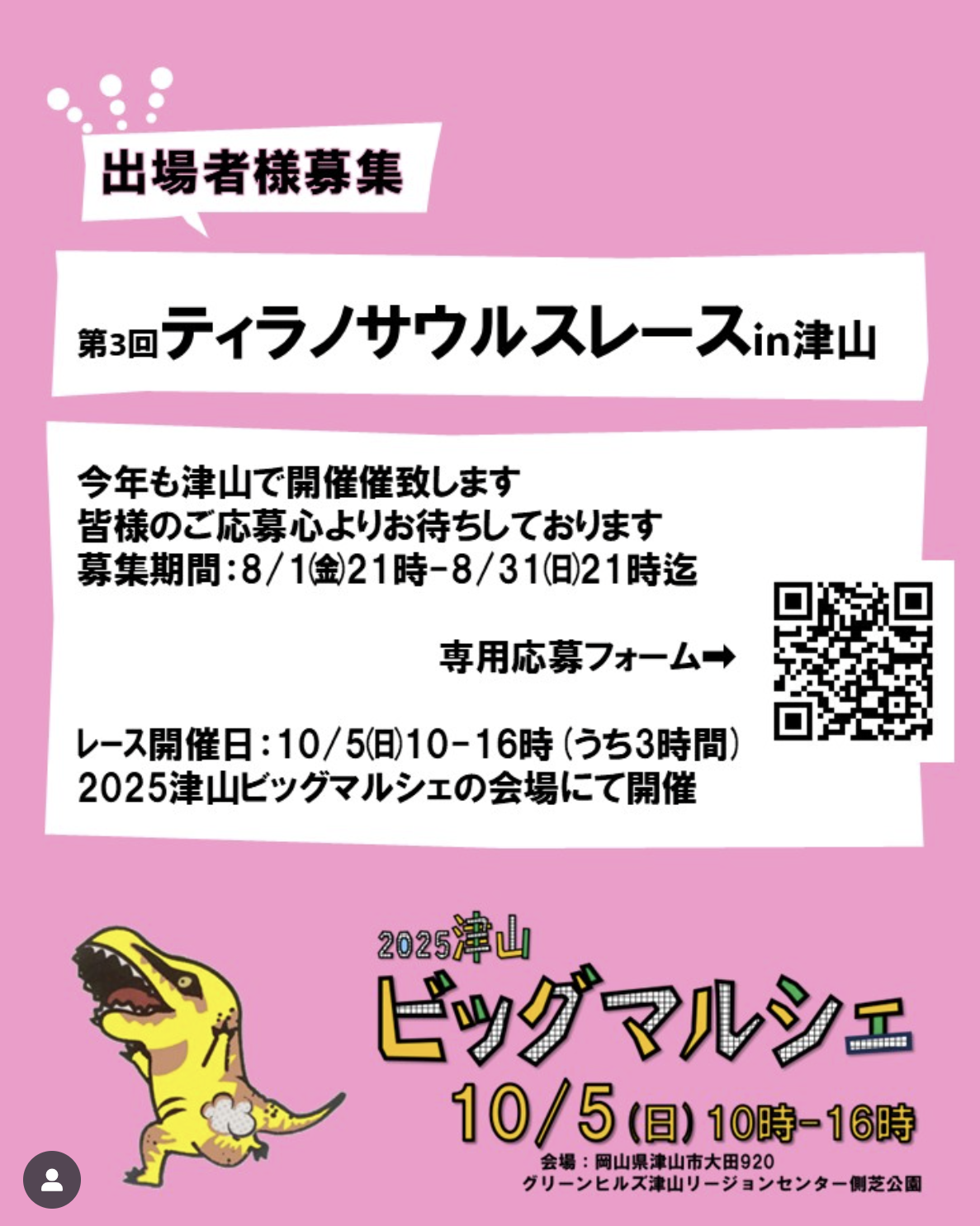 【10/5】第3回ティラノサウルスレース in 津山 募集開始! - 岡山スポーツイベント速報