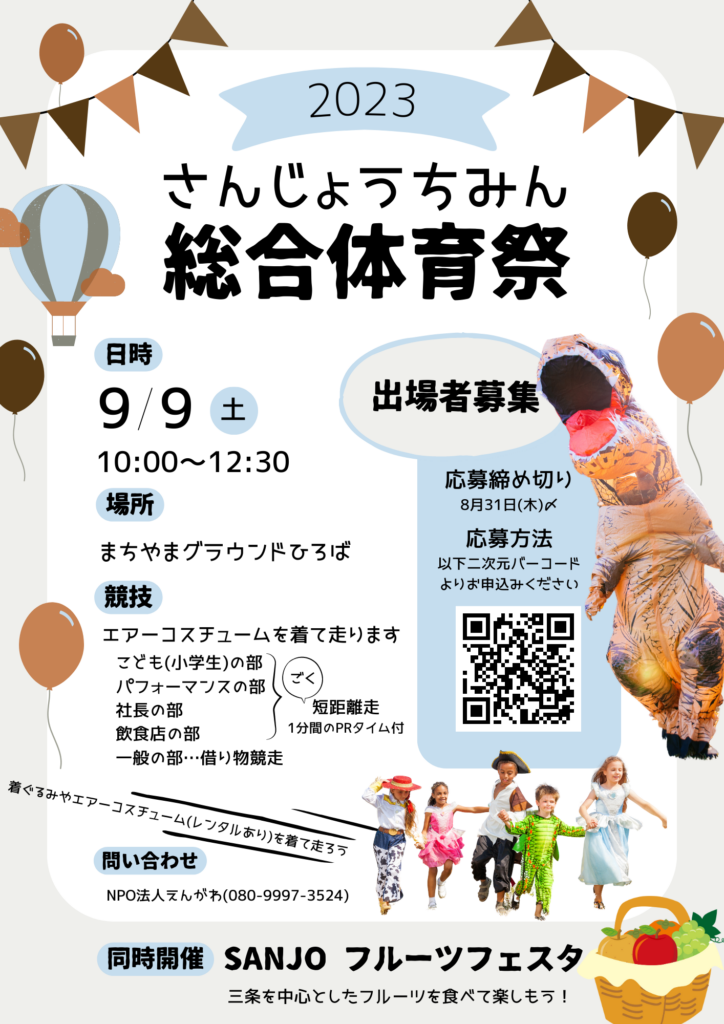 スマホの方は最下部に【サイドバー】を表示することにより全国のレース会場を確認できます。 2023年9月9日(土) さんじょうちみん総合体育祭 内の恐竜レース まちやまグランドひろば 新潟県三条市 15:新潟 X Facebook LINE コピー 2023.09.092025.12.29 主催者ホームページ さんじょうちみん総合体育祭 - まちやま ※レースの規模や雰囲気は主催者ホームページ等でご自身でご確認のほどよろしくお願いします