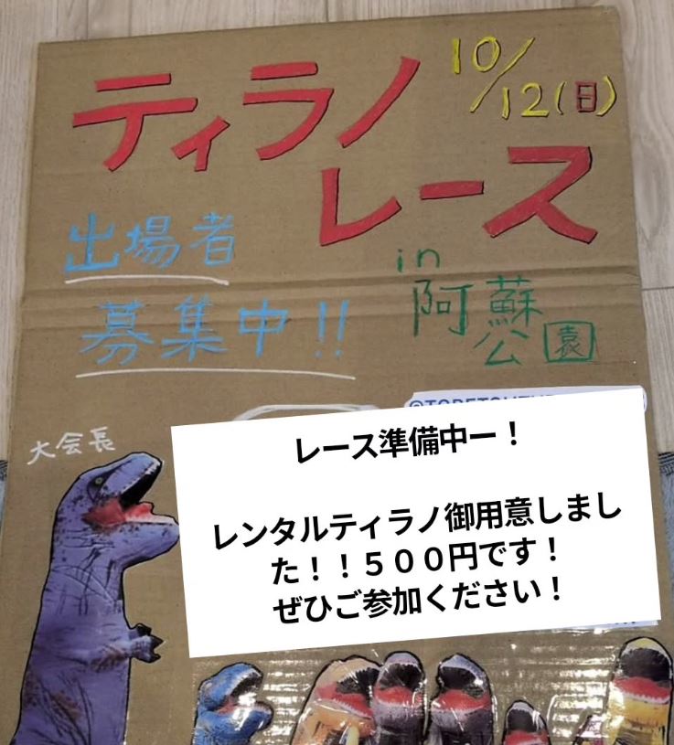 スマホの方は最下部に【サイドバー】を表示することにより全国のレース会場を確認できます。 2025年10月12日(日) ティラノレース in 阿蘇公園 北海道石狩郡当別町 01:北海道 X Facebook LINE コピー 2025.07.102025.12.28 主催者インスタグラム Instagram ※レースの規模や雰囲気は主催者ホームページ等でご自身でご確認のほどよろしくお願いします