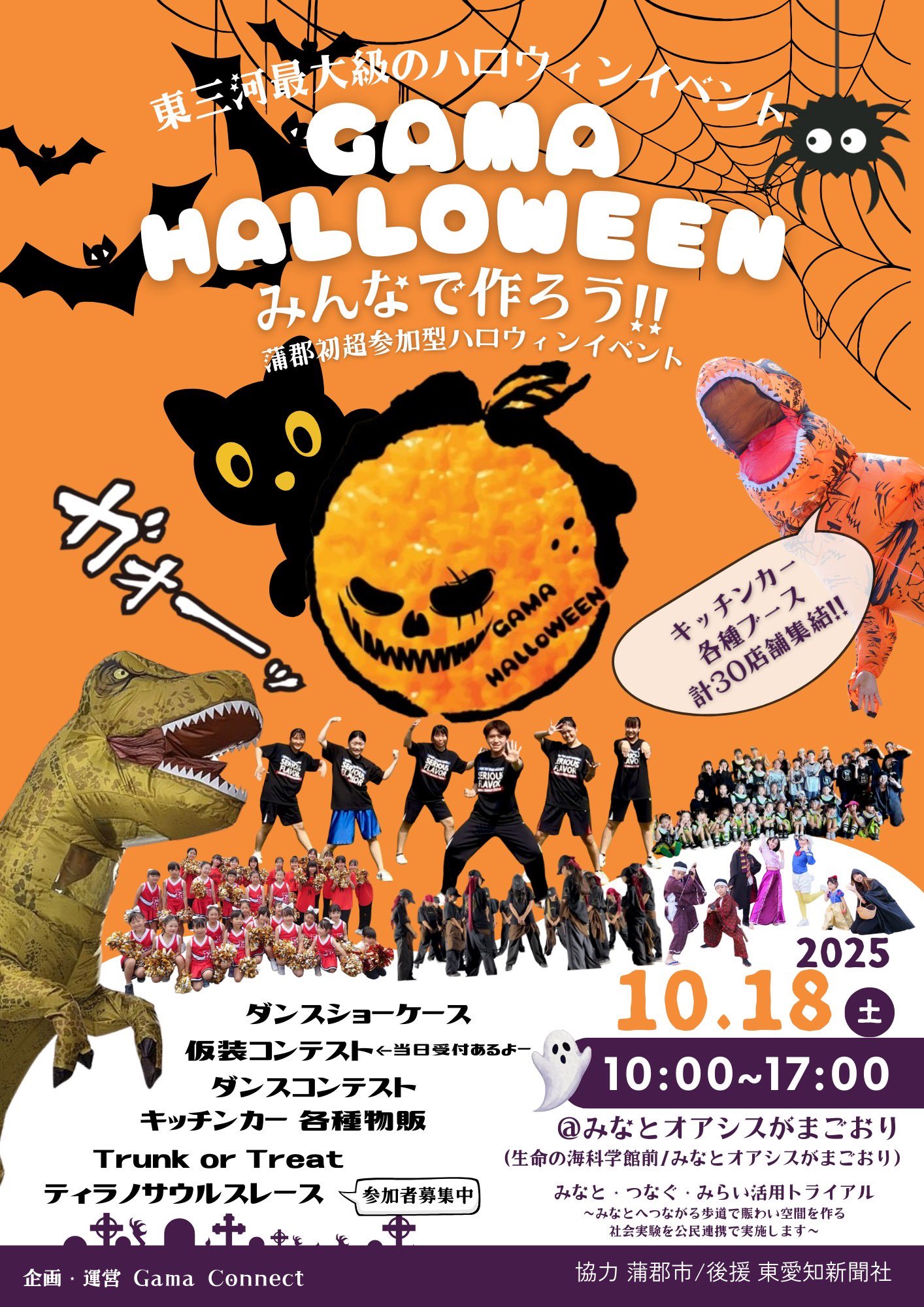 GAMA HALLOWEEN は、蒲郡で生まれた みんなが主役になれるハロウィンイベント です! 仮装してステージに立ったり、 アートやワークショップを楽しんだり、 子どもも大人も一緒に笑顔になれるコンテンツがいっぱい。 街全体を回るスタンプラリーや 日本ではまだ珍しいトランクオアトリートも開催! 遊びに来るだけで、 ...