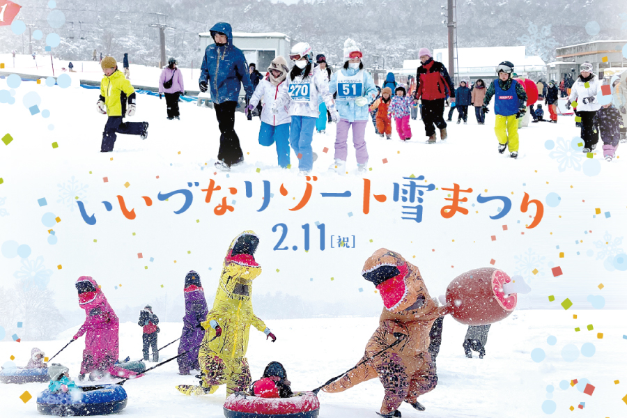 長野市街地から車で約30分!近くて、安くて、ナイターも楽しめるいいづなリゾートスキー場で、1日まるごと冬を楽しむ「雪まつり」を開催します! 2/11(祝)は、滑る人も、滑らない人も大歓迎。全国的に話題