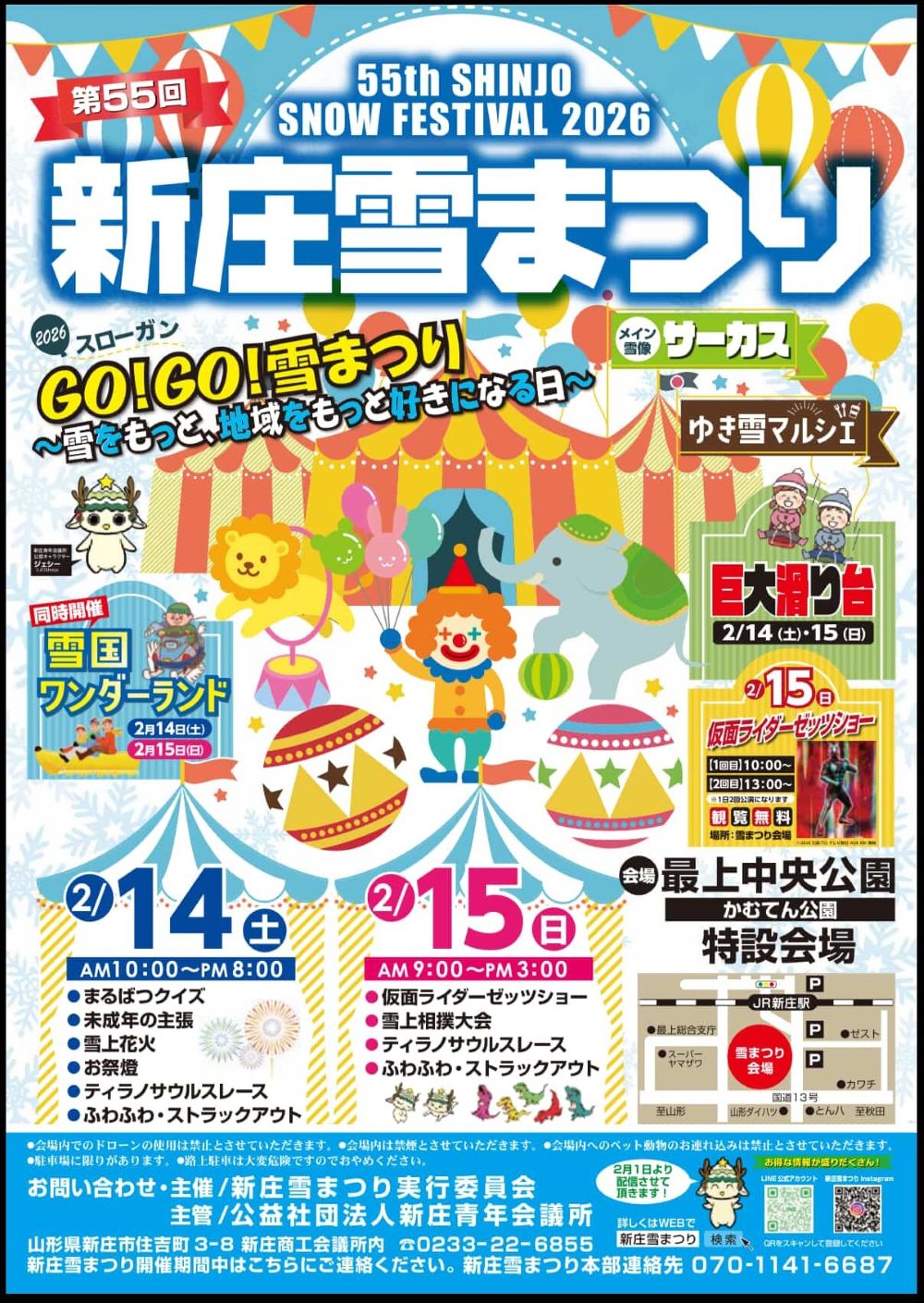 スマホの方は最下部に【サイドバー】を表示することにより全国のレース会場を確認できます。 2026年2月14日(土)、15日(日) 第55回新庄雪まつり内の ティラノサウルスレース 最上中央公園 山形県新庄市 06:山形 X Facebook LINE コピー 2026.01.022026.02.13 主催者ホームページ 第55回 新庄雪まつり 2026GO!GO!雪まつり ~雪をもっと、地域をもっと好きになる日~ 今年のメイン雪像はサーカス! 巨大滑り台と仮面ライダーゼッツショーもあるよ。 皆様のお越しをお待ちしております♪ 2/14 (土) ※レースの規模や雰囲気は主催者ホームページ等でご自身でご確認のほどよろしくお願いします