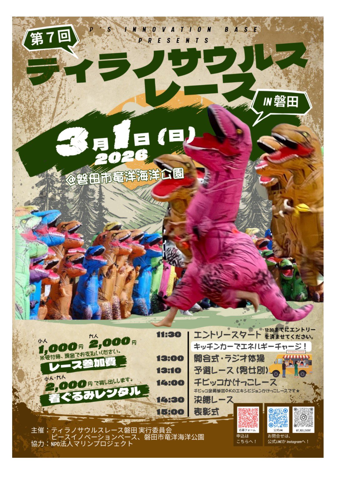 スマホの方は最下部に【サイドバー】を表示することにより全国のレース会場を確認できます。 2026年3月1日(日) 第7回ティラノサウルスレース in 磐田 竜洋海洋公園 静岡県磐田市 22:静岡 X Facebook LINE コピー 2026.01.032026.02.16 主催者募集フォーム 【2026年3月1日(日)】第7回ティラノサウルスレース in 磐田 応募フォーム🦖✍🏻 ※レースの規模や雰囲気は主催者ホームページ等でご自身でご確認のほどよろしくお願いします