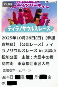 最近は、他のイベント内でティラノサウルスレースが行われることが多いので、その場合はイベントページを活用することができます。