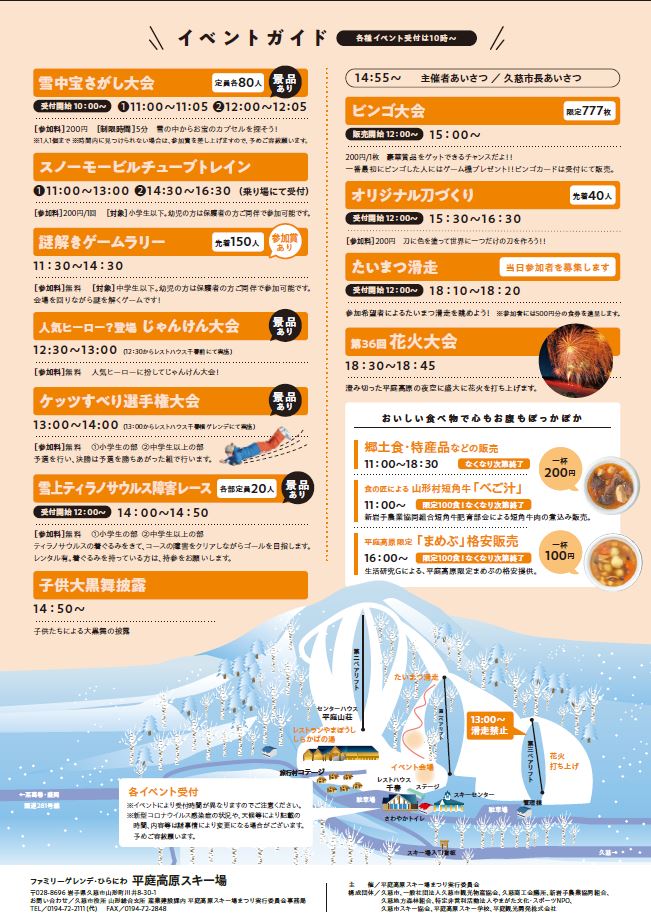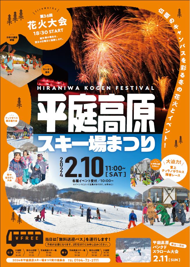 スマホの方は最下部に【サイドバー】を表示することにより全国のレース会場を確認できます。 2024年2月10日(土) 平庭高原スキー場まつり・第36回花火大会 平庭高原スキー場 岩手県久慈市 03:岩手 X Facebook LINE コピー 2023.11.032025.12.29 主催者ホームページ 301 Moved Permanently