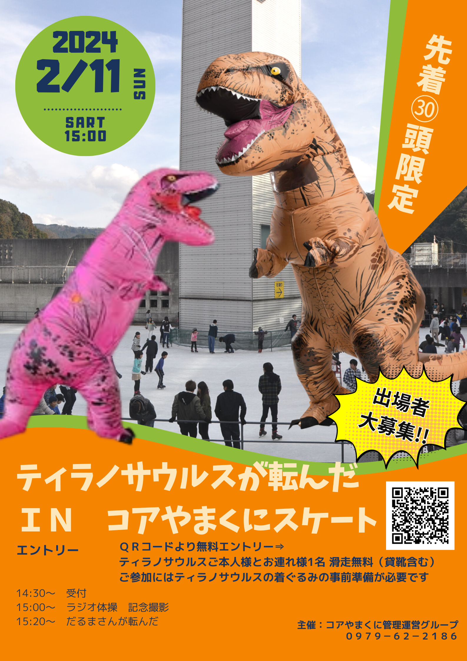 ティラノサウルスが転んだ INコアやまくにスケート | 夢があつまる憩いの場所 コアやまくに