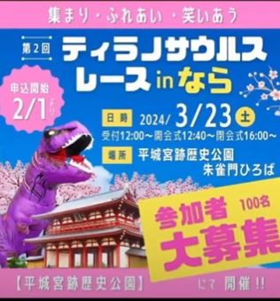 スケジュール空けておいて下さいね🩷#ティラノサウルスレース pic.twitter.com/HC0R0n2vmu— 【公式】ティラノサウルスレースinなら (@KyamamotoM) January 11, 2024