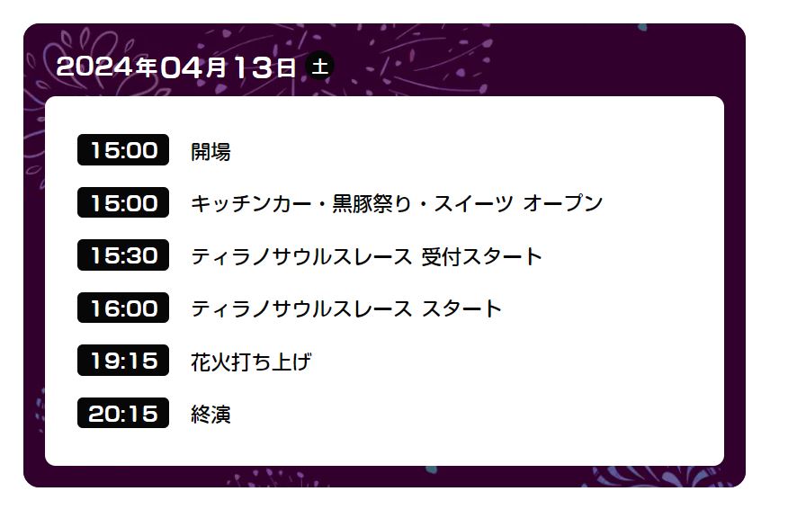 昼のイベントのところにティラノサウルスレースの表示があります。